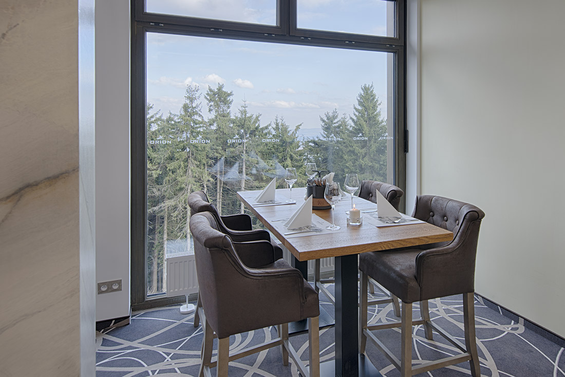 Magickou atmosférou restaurace dotváří výhled na panenskou přírodu a panoramata Krušných hor.